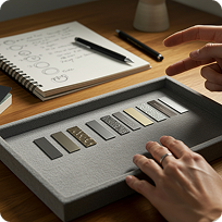 Tell us the textures and colours you want, and our finishing specialists will prepare tailored swatches, pricing, and next-step guidance.
