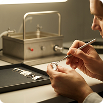 We craft your pieces with recycled metals, treat plating water in a closed-loop system that safeguards the environment, and protect every design under strict NDAs and controlled-access protocols.